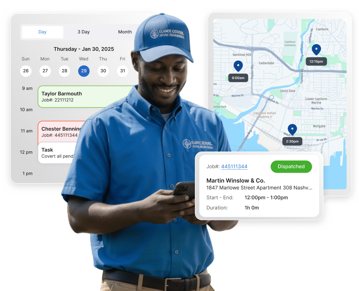 - Live Crew Tracking: See where every tech is, monitor job progress, and know what’s happening across the schedule without making extra calls.